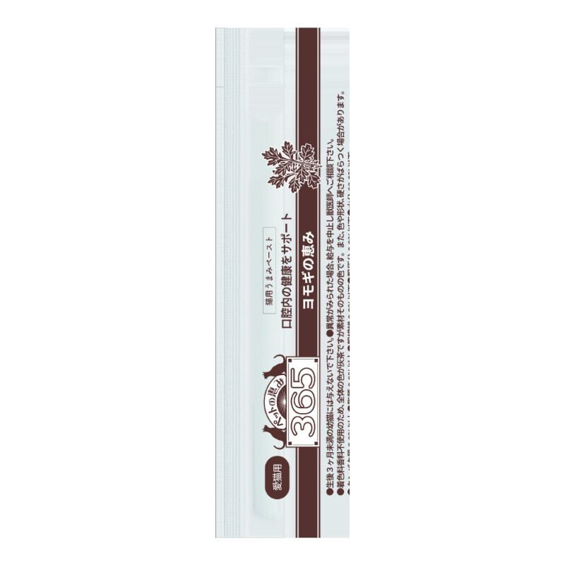 ヨモギなど希少な機能性素材と良質な国産鶏むね肉や鮭を配合した栄養バランスの良いペースト状のおやつです。